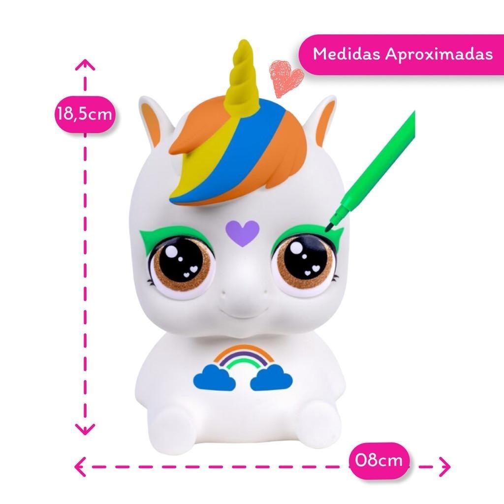 MUNDO COLORIDO - COFRINHO UNICORNIO Descubra a magia do Mundo Colorido Unicórnio! Este encantador cofrinho vem com 6 canetinhas de tinta lavável e uma esponjinha, permitindo que as crianças acima de 3 anos soltem a criatividade ao decorar seu próprio unicórnio. Além de ser super divertido, o brinquedo ajuda no desenvolvimento das habilidades motoras finas e no aprendizado de cores, enquanto ensina a importância de economizar. Um presente educativo e mágico para pequenas mentes criativas! ACOMPANHA: 1 - Unicórnio em branco 6 - Canetinhas 1 - Cartela com formas divertidas 1 - Esponja para remoção ESPECIFICAÇÕES: Material: Vinil Som: não possui som Marca: Super Toys Referência: 567 Certificado de Segurança: INMETRO Idade recomendada: acima de 3 anos