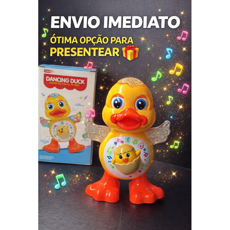 Brinquedo Patinho Dançante com Luzes Pato Dançarino Anda, Dança com Luz e Som