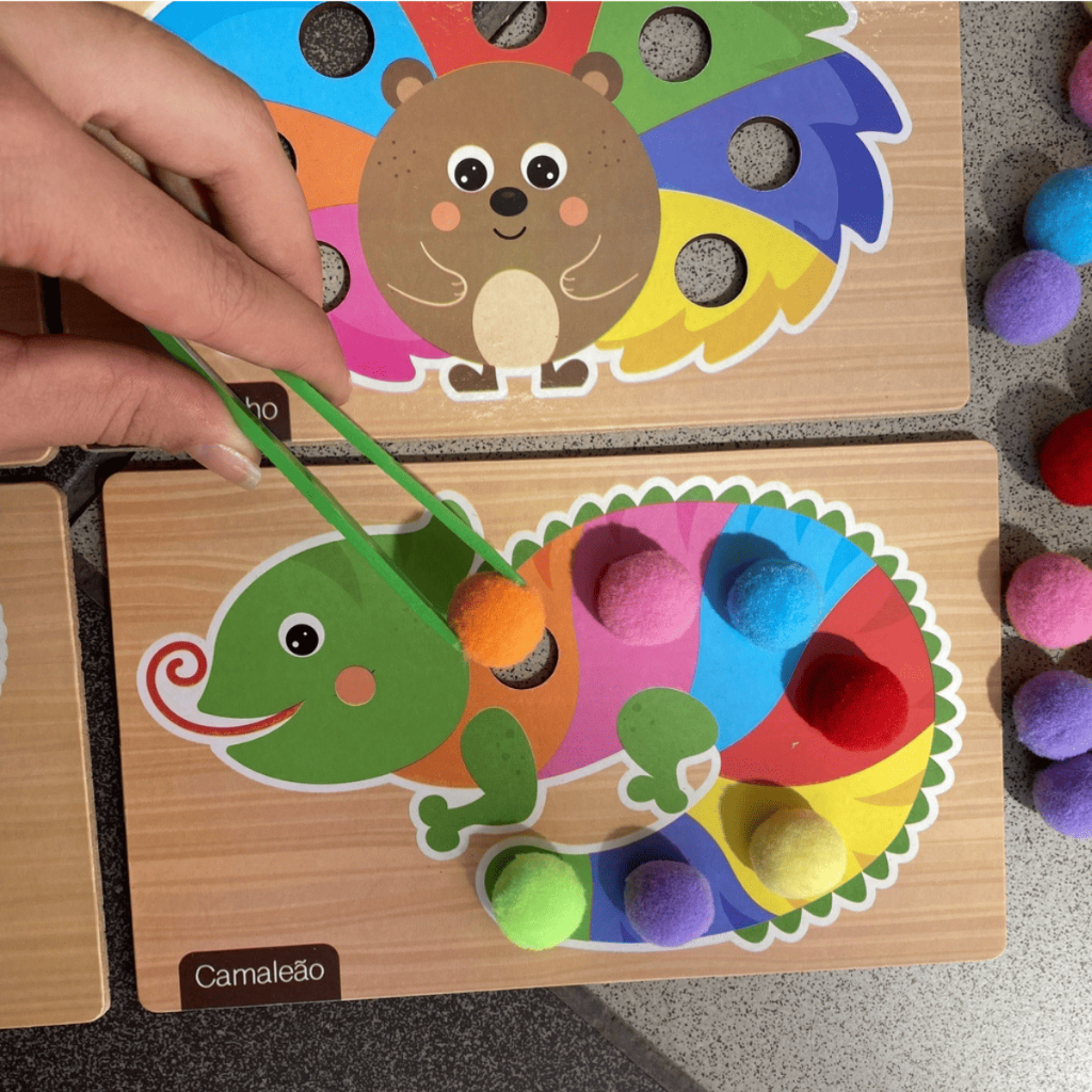 Brinquedo Pega Pompom Infantil Educativo em Madeira - Coordenação Motora Fina - Coleção 2024 NIG