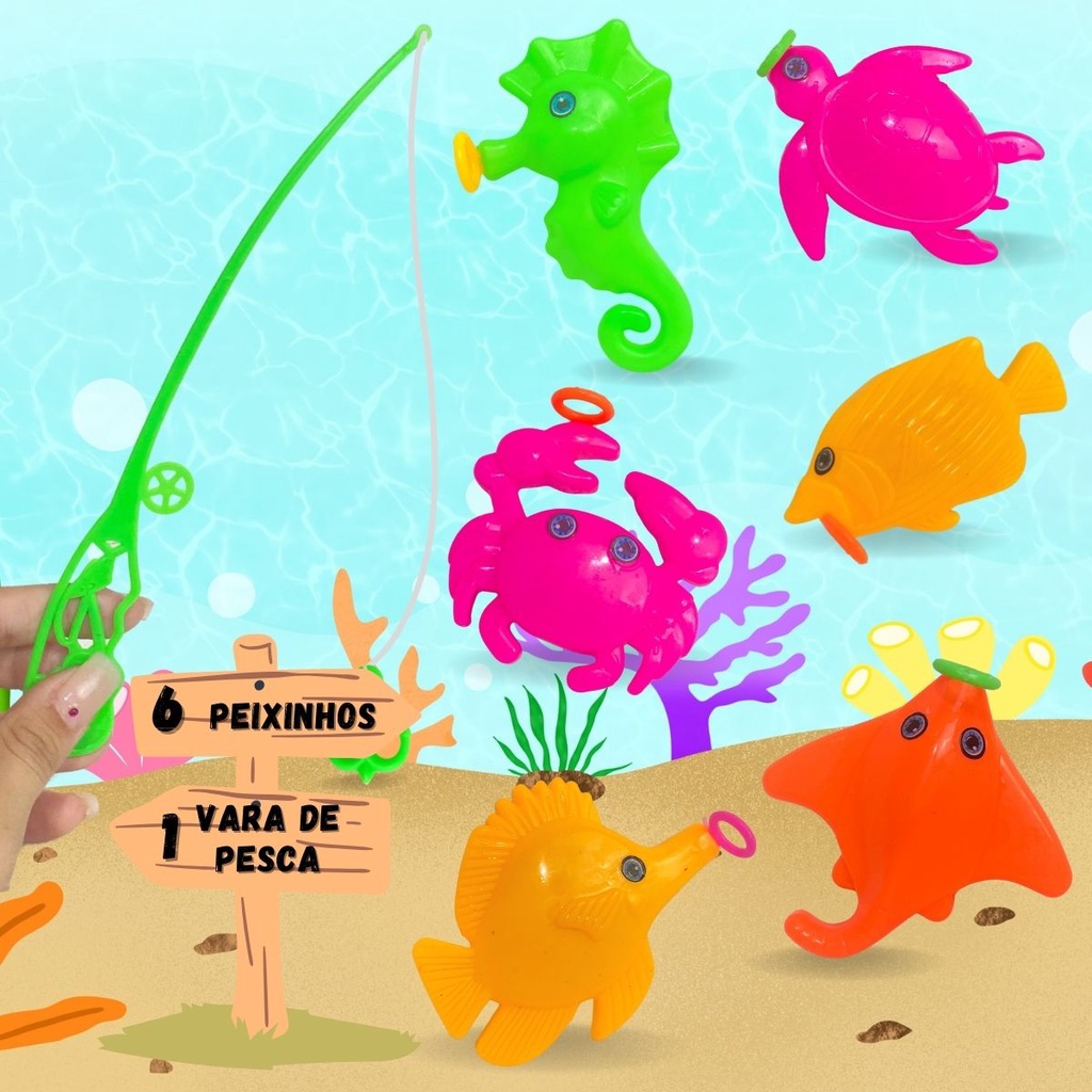 "Brinquedo Pescaria Infantil Pega Peixe Com Vara De Pescar" SOMOS UMA DAS LOJAS COM MAIS VARIEDADES DE BRINQUEDOS NO PAÍS Você encontra diversos brinquedos diferentes, de alta qualidade e com o Selo do INMETRO, trazendo segurança e qualidade em todos os nossos produtos! Todos os produtos acompanham a Nota Fiscal e contam com garantia de fábrica, priorizando a segurança e uma boa experiência de compra para nossos clientes! Prezamos pela qualidade de nossos produtos, por isso todos os produtos são testados e conferidos antes do envio! Temos tudo à PRONTA ENTREGA, e enviamos para todo o Brasil. Todas nossas fotos e vídeos são reais, tiradas por nossa equipe buscando passar maior transparência para nossos clientes. = = = = = = = = = = = = = = = = = = = = = = = DESCRIÇÃO = = = = = = = = = = = = = = = = = = = = = = = Pega Peixe muito fácil de brincar, com peixinhos e vara de pesca para as crianças se divertirem. Pode ser utilizado na água, areia, baldes, banheira ou onde a imaginação permitir. As crianças vão adorar pescar os peixinhos e brincar por horas. Funções: Ideal para brincadeiras recreativas Estimula coordenação motora e diversão = = = = = = = = = = = = = = = = = = = = = = = VARIAÇÕES DISPONÍVEIS = = = = = = = = = = = = = = = = = = = Disponível nas seguintes opções de compra: Kit 1 Unidade 1 Kit com 7 peças (6 Peixinhos + 1 Vara de Pesca) Kit 3 Unidades 3 Kits completos (cada kit com 6 Peixinhos + 1 Vara de Pesca) Kit 6 Unidades 6 Kits completos (cada kit com 6 Peixinhos + 1 Vara de Pesca) = = = = = = = = = = = = = = = = = = = CONTEÚDO DA EMBALAGEM = = = = = = = = = = = = = = = 6 Peixinhos 1 Vara de Pesca Total: 7 peças por kit = = = = = = = = = = = = = = = = = = = ESPECIFICAÇÕES = = = = = = = = = = = = = = = Medidas aproximadas do peixe: Altura: 6 cm Largura: 5 cm Comprimento: 2 cm Material: Plástico (Não tóxico) Idade recomendada: Recomendável para crianças maiores de 3 anos. INMETRO: Registro 007592/2020 = = = = = = = = = = = = = = = = = = = PRODUTO A PRONTA ENTREGA ENVIO IMEDIATO = = = = = = = = = = = = = = = = = = = PERGUNTAS FREQUENTES = = = = = = = = = = = = = = = = = = P: Quando meu produto será postado? R: A postagem é feita em até 24h após a confirmação da compra. P: Comprando hoje, quando recebo o produto? R: A data de entrega pode ser verificada perto do preço do produto. P: O meu produto vem com nota fiscal? R: Após a compra você receberá a nota no e-mail. = = = = = = = = = = = = = = = = = = = Caso tenha mais alguma dúvida faça sua pergunta para nós!