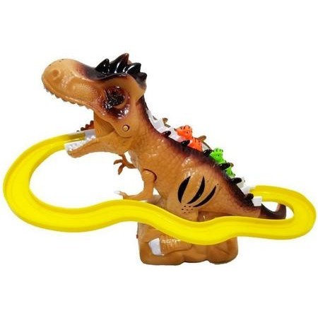 Brinquedo pista de dinossauro com escorregador para dinossauros com luz e som