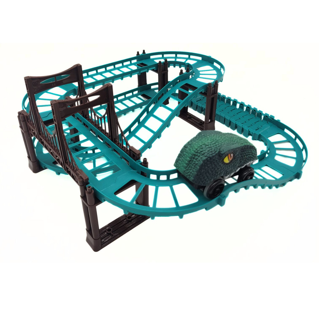 Brinquedo Pista Trenzinho Dinossauro Montável Trilhos Carrinho Trem Elétrico Veloz Ponte Monta Monta