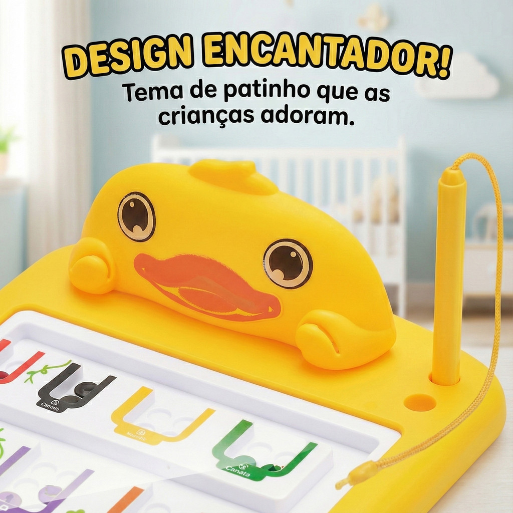 Brinquedo Prancheta Quadro Lousa Pedagógico Mesa Labirinto Magnética Interativa Para Crianças Infantil Kizumba O Labirinto Magnético é um brinquedo educativo e interativo desenvolvido para estimular coordenação motora fina, concentração, raciocínio lógico e percepção visual das crianças. Com o uso de uma caneta magnética, o objetivo é conduzir as bolinhas metálicas coloridas pelos caminhos até os espaços correspondentes, incentivando habilidades cognitivas de forma divertida. Inspirado no método Montessori, promove aprendizado através da prática e exploração, sendo ideal para crianças acima de 4 anos. Especificações Técnicas: • Idade recomendada: +4 anos • Material: Plástico resistente e ímã • Cores: Amarelo com detalhes multicoloridos • Tema: Sortido Dimensões: • Altura: 28cm • Largura: 21cm FAQ (Perguntas Frequentes): 1. As bolinhas saem do brinquedo? Não. As bolinhas ficam presas internamente para maior segurança. 2. A caneta é presa ao brinquedo? Sim, a caneta magnética possui cordão para evitar perdas. 3. Pode lavar o brinquedo? Não. Não deve ser submerso em água; limpar apenas com pano úmido. 4. É seguro para crianças pequenas? Sim, desde que tenha mais de 4 anos e esteja sob supervisão de um adulto. Conteúdo da Embalagem: • 01 Tabuleiro com Labirinto Magnético • 01 Caneta Magnética Importante: Valor Unitário Imagens Meramente Ilustrativas Não nos responsabilizamos pelo mau uso do produto