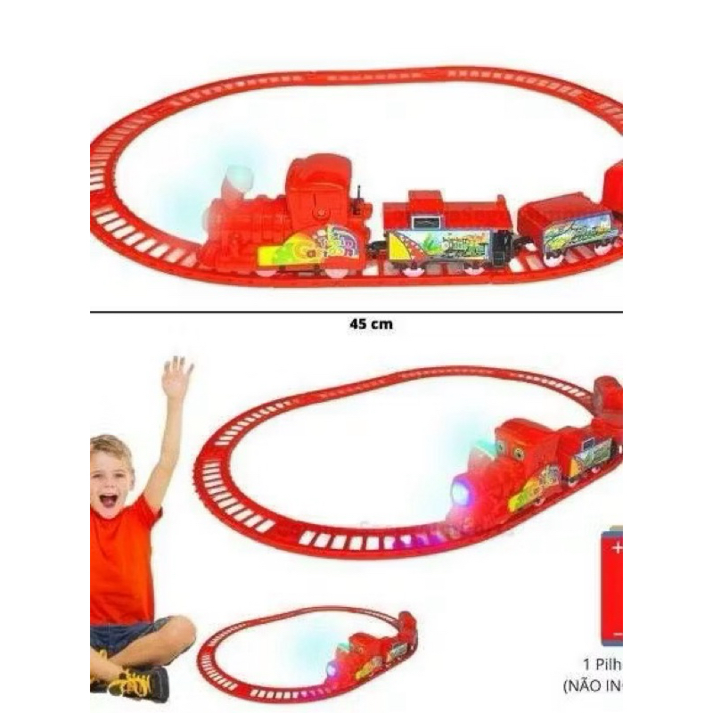Trenzinho divertido com som e luz Trem divertido Contêm 12 peças Criança a partir de 3 anos Brincadeira para a família toda Atenção :NAO VAI PILHA Colocar pilha para funcionar!!! atenção trenzinho colorido vai o que tem disponível no momento ex: amarelo, azul,vermelho (OBS: para funcionamento do trenzinho, e necessário coloca a pilha AA que fica na parte de baixo do trem !)