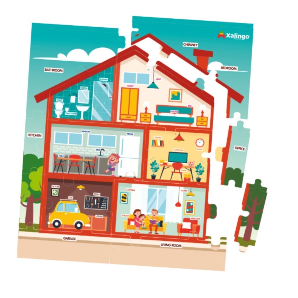 Brinquedo Quebra-Cabeça Didático Partes da Casa em Inglês para Crianças - 14 Peças - Xalingo 12821