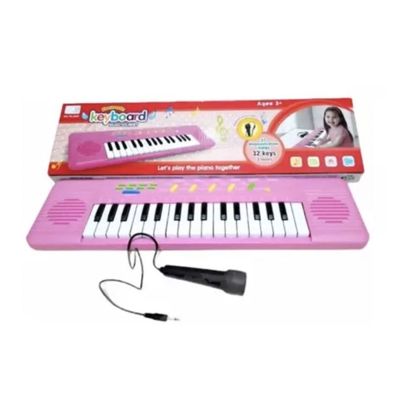 Teclado infantil para tocar e outras teclas com funções com melodia,volume,batidas. Produto super resistente. cor:Rosa Alimentação:4 pilhas AA não inclusas Acompanha 1 microfone