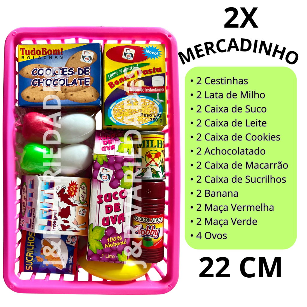 COMPRANDO ATE MEIO DIA, ENVIAMOS NO MESMO DIA! Kit Brinquedos Infantis Para Meninas ou Meninos Mini Mercado 26 PECAS com comidinhas Cestinha e Acessórios, Frutas e Legumes - ENVIO IMEDIATO O kit Mercadinho e um presente incrível para Meninos e Meninas no Aniversário, Dia das Crianças ou Natal! Este kit Educativo e Pedagógico estimula o aprendizado de forma divertida e lúdica, funcionando como um brinquedo para Todas as crianças e ate em fase de introdução alimentar ou com dificuldades em aceitar certos alimentos. Promove a socialização, identificação de cores, formas e texturas, além de ser perfeito para brincadeiras de faz de conta, permitindo que as crianças imitem o que veem os adultos fazerem na cozinha, aproximando-as do mundo cotidiano. Complemento Para Geladeira Infantil e Fogão Infantil e diversão para brincar de Casinha! Conteúdo do Kit: • 02 Cestinha • 02 Caixa de Suco • 04 Ovos • 02 caixinha de Leite • 02 caixas de Batata Chips • 02 caixinha de macarrão spaghetti • 02 milho • 02 Achocolatado Especificações do Produto: • Peso: aproximadamente 150 g • Cor: colorido • Material: plástico (não comestível) • Indicado para crianças maiores de 3 anos Perguntas Freqüentes: • Os produtos estão à pronta entrega? Sim, todos os produtos anunciados estão disponíveis para envio imediato. Esse kit é perfeito para estimular a imaginação e tornar as brincadeiras ainda mais reais, com itens inspirados no dia a dia. Ideal para uso no quintal, sala, quarto ou até mesmo para levar em passeios, proporcionando diversão em qualquer lugar! Para Geladeira Infantil e Fogão Infantil