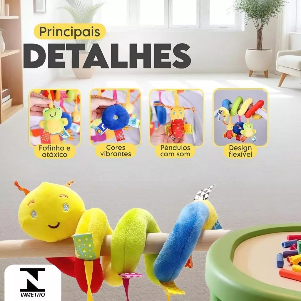 Móbile Chocalho Centopeia Espiral Colorido - Diversão Garantida para Seu Bebê! O Móbile Chocalho Centopeia em formato espiral é perfeito para entreter e estimular seu bebê em qualquer lugar! Com cores vivas e design encantador, ele pode ser facilmente fixado em diferentes locais, proporcionando diversão contínua. 🌟 Versátil e Prático: Pode ser colocado em carrinhos de bebê, bebê conforto, berços, tapetinhos e muito mais. Seu formato espiral permite uma fixação fácil e segura em diversos lugares. 🍼 Brinquedo Unissex Ideal para meninos e meninas, esse móbile é perfeito para acompanhar o desenvolvimento do seu bebê. 📏 tamanho: - Aproximadamente 25 cm; esticado pode alcançar até 50 cm, proporcionando ainda mais diversão! 🌈 Material: Confeccionado em algodão macio e confortável, seguro para o bebê. 🌍 Produto Novo e Importado - Pronta Entrega! Garanta já o seu e proporcione momentos de alegria e estímulo para seu bebê!