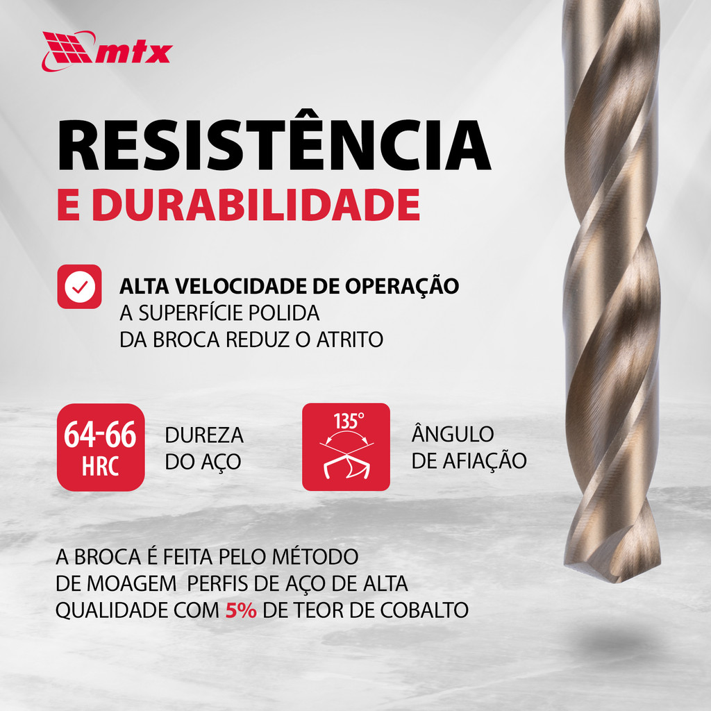 BROCA ACO RAPIDO PROFISSIONAL, COBALTO 5%, METAL DURO E ACO INOX, 10MM, 1PC // MTX
