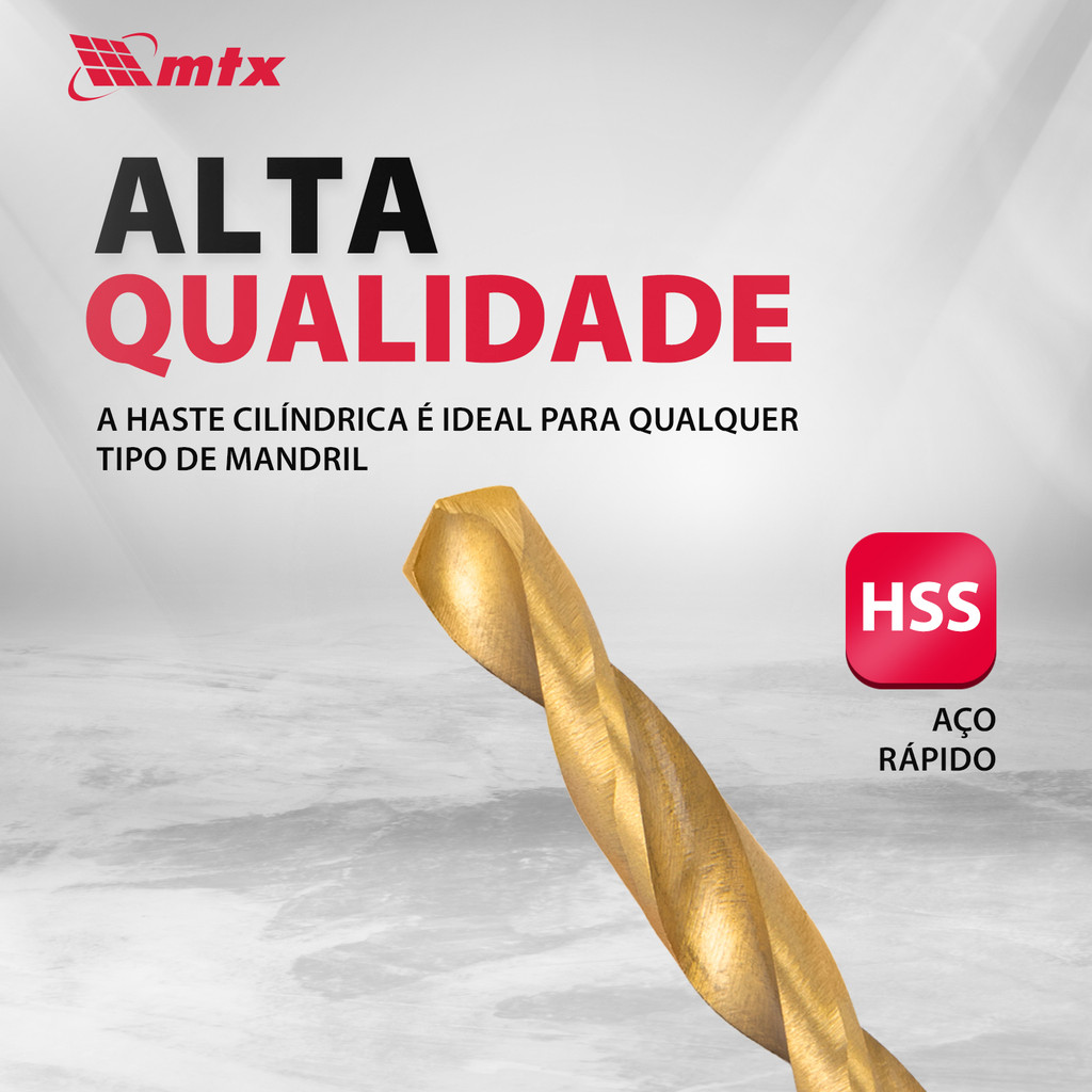BROCA ACO RAPIDO PROFISSIONAL, NITRETO DE TITANIO, PARA METAL, 5MM, HASTE CILINDRICA, 1PC // MTX