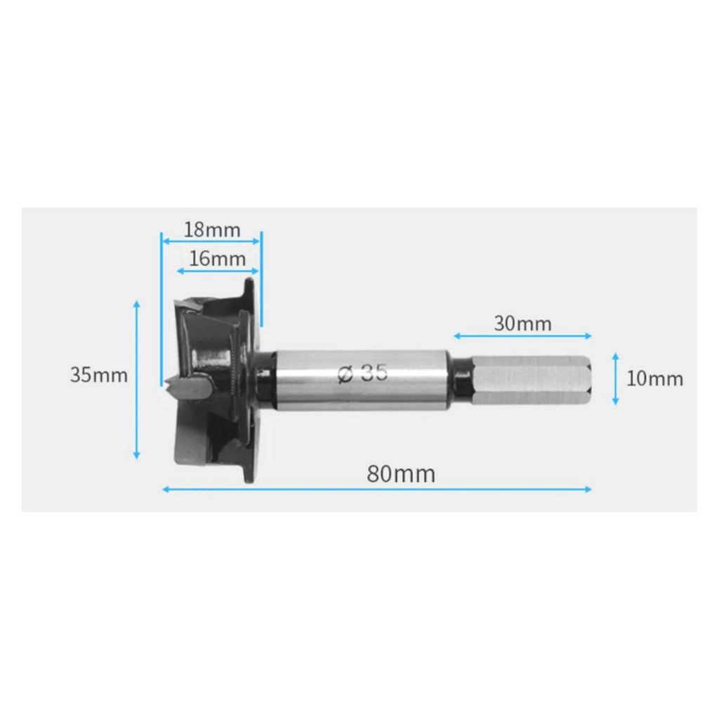A Broca/Fresa Caneco Forstner 35mm com 3 Lãminas é perfeita para fazer furos para dobradiças e para qualquer outra aplicação que exija um furo circular com ótimo acabamento, sem rebarba, mais rápido e suave que a Broca Caneco com 2 Lâminas. Pode ser utilizada tanto em Furadeira Manual como a de Bancada e também em Parafusadeira com função de Furadeira. Produzido com Material de Alta durabilidade. Corte Perfeito e acabamento Profissional. Possui Ponto Guia para facilitar a centralização. A Broca vem com um Limitador não Ajustável de Medidor de Profundidade para facilitar ainda mais o seu trabalho. Especificações do Produto: - Aplicação: MDF, MDP, Compensado, Compensado Naval ou qualquer outro material derivado da Madeira - Material da Broca: Carbide (Material oriundo do Tungstênio) - Profundidade limitada do furo: Aprox. 12mm/0,47in A cor do produto pode variar de acordo com cada monitor.