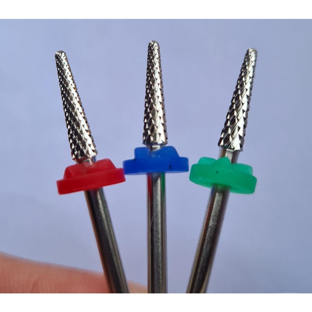 Anúncio referente a 1 (uma) broca. Marca: Wilson. Broca de tungstênio de alta qualidade e durável (se bem cuidada). Material: tungstênio. Tamanho: padrão, encaixa em todos os modelos de micromotor. Tipo de corte: cruzado. Granulometria: Vermelha: fina. Azul: média. Verde: grossa. Modelo: cônico fino. Ideais para: - Acabamento/nivelamento; - Acertar as paredes laterais; - Nivelar a região da cutícula; - Acentuar a curvatura na ponta; - Remover o excesso de gel por baixo do alongamento e até a unha natural. Acabamento impecável, corte preciso e macio.