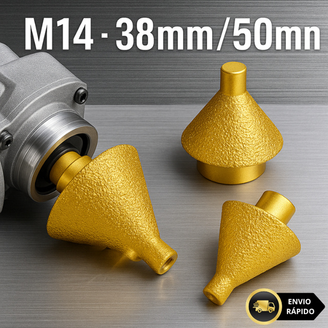 🔩 Broca de Chanfro Diamantada M14 38mm / 50mm | Alta Precisão em Mármore, Granito e Cerâmica Leve seus acabamentos ao padrão profissional com a Broca de Chanfro Diamantada M14, desenvolvida para chanfrar, polir e dar acabamento preciso em mármore, granito, porcelanato e cerâmica. Com partículas de diamante industrial de alta densidade, esta ferramenta entrega corte rápido, superfícies lisas e longa durabilidade ideal para profissionais da construção, marmorarias e amantes do DIY. ⚙️ Características Técnicas Modelos Disponíveis: Ø 38mm Ø 50mm Rosca: Padrão M14 (compatível com esmerilhadeiras e politrizes) Material: Liga metálica com revestimento de partículas diamantadas premium Cor: Dourado metálico Peso: 38mm → 100g | 50mm → 220g Uso indicado: Mármore, granito, porcelanato, cerâmica e pedra artificial Função: Chanfro, desbaste e acabamento de bordas 💎 Diferenciais Precisão Profissional: Design de chanfrado que reduz a pressão e garante superfícies lisas e uniformes. Corte Durável: Partículas de diamante resistentes ao desgaste — mantêm a afiação por muito mais tempo. Cera de Resfriamento Integrada: Dispensa o uso de água contínua, reduzindo o atrito e aumentando a vida útil. Rosca M14 Estável e Segura: Fixação firme e compatibilidade universal com ferramentas elétricas. Multiuso: Perfeita para instalação de pisos, bancadas, reformas residenciais e artesanato em pedra. 📦 Conteúdo da Embalagem 1x Broca de Chanfro Diamantada M14 (38mm ou 50mm, conforme seleção) 🧱 Ideal Para Profissionais de marmoraria e porcelanato Decoradores e instaladores Projetos residenciais e reformas Entusiastas do DIY que buscam acabamento de alto nível 🛠️ Precisão, durabilidade e acabamento perfeito em cada detalhe. 💬 Garanta agora a Broca Diamantada M14 e eleve o padrão dos seus projetos!