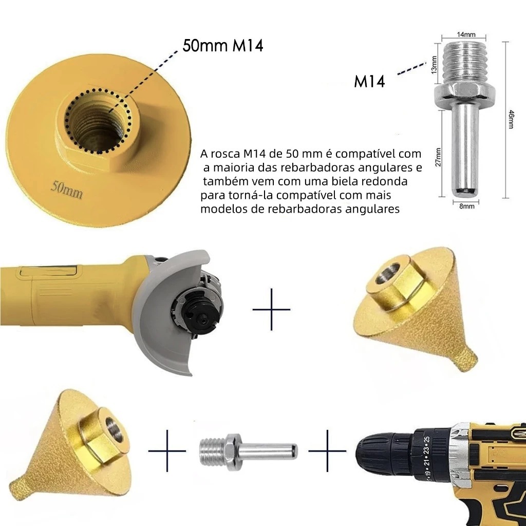 Broca de Chanfrar Diamantada M14 Serra Furo Cerâmico Cônica 38mm/50mm