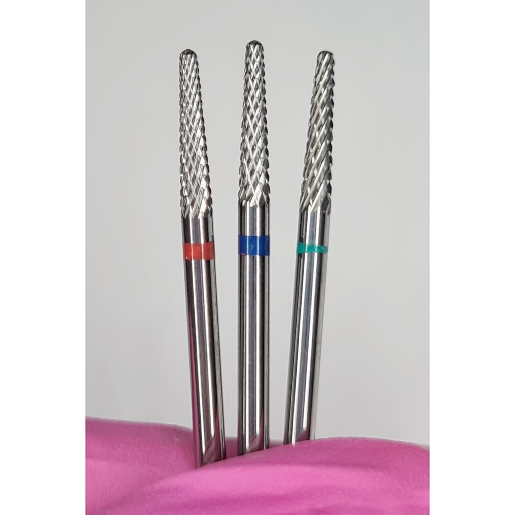 Contém: 01 broca. Corte: Vermelha: fino. Azul: mediano. Verde: grosso. Indicadas para: - Acabamento na região da cutícula; - Nivelar tip; - Fazer contorno na francesa reversa; - Limpeza por baixo do alongamento; - Remoção da unha natural.