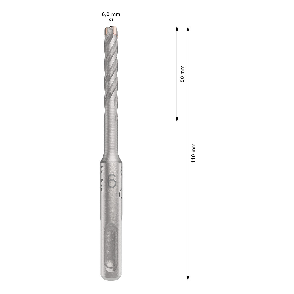 Broca de Vídea SDS Plus 6mm x 110mm para Concreto Armado Bosch PRO SDS Plus-5X