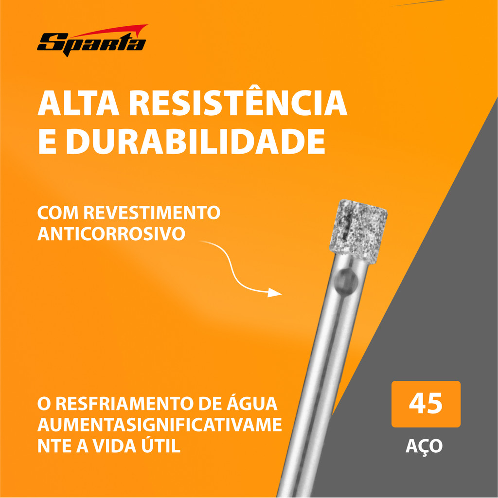 A Broca Diamantada para cerâmicas e vidro Sparta 7280655, com um diâmetro de 6 mm e haste cilíndrica, representa uma solução ideal para quem busca eficiência e precisão ao trabalhar com materiais delicados. Esta ferramenta de corte é especialmente desenvolvida para proporcionar furos precisos em cerâmicas e vidro, duas superfícies notoriamente difíceis de trabalhar devido à sua propensão a rachaduras e quebras. A broca é projetada para ser utilizada em furadeiras ou parafusadeiras, operando em modo não impacto e numa faixa de velocidade de 350-700 rpm, garantindo assim a integridade do material durante o processo de perfuração. Vantagens: Resistência e Durabilidade: Fabricada em aço 45, a broca oferece uma combinação ideal de resistência e durabilidade. Esta qualidade assegura que a broca possa enfrentar o desafio de perfurar materiais duros como cerâmica e vidro, sem sofrer desgaste prematuro. A resistência do material garante que a broca mantenha sua eficácia ao longo do tempo, mesmo após uso repetido. Proteção Anticorrosiva: O revestimento anticorrosivo é uma característica crucial para ferramentas que podem ser expostas à umidade, especialmente em ambientes como banheiros e cozinhas onde a cerâmica e o vidro são frequentemente utilizados. Este revestimento protege a broca contra a corrosão, garantindo que sua integridade seja preservada e que a ferramenta permaneça funcional por mais tempo. Refrigeração a Água: O uso de refrigeração a água durante a perfuração não é apenas uma prática recomendada para evitar o superaquecimento da broca; é também uma técnica que prolonga significativamente a vida útil do acessório. A refrigeração a água reduz o atrito e a geração de calor, minimizando o desgaste da broca e permitindo cortes mais limpos e precisos. Este método de refrigeração é particularmente benéfico ao trabalhar com vidro e cerâmica, pois ajuda a prevenir danos ao material causados pelo calor excessivo. A Broca Diamantada para cerâmicas e vidro Sparta 7280655 éuma ferramenta indispensável para projetos de renovação doméstica, instalação de acessórios em banheiros e cozinhas, ou qualquer outro trabalho que exija furos precisos em cerâmica ou vidro. Sua construção robusta, proteção contra corrosão e a capacidade de usar refrigeração a água fazem desta broca uma escolha confiável e durável para uso doméstico. Seja para pendurar decorações, instalar fixações ou criar passagens para tubulações em azulejos, essa broca oferece a precisão e a resistência necessárias para realizar o trabalho com eficácia.