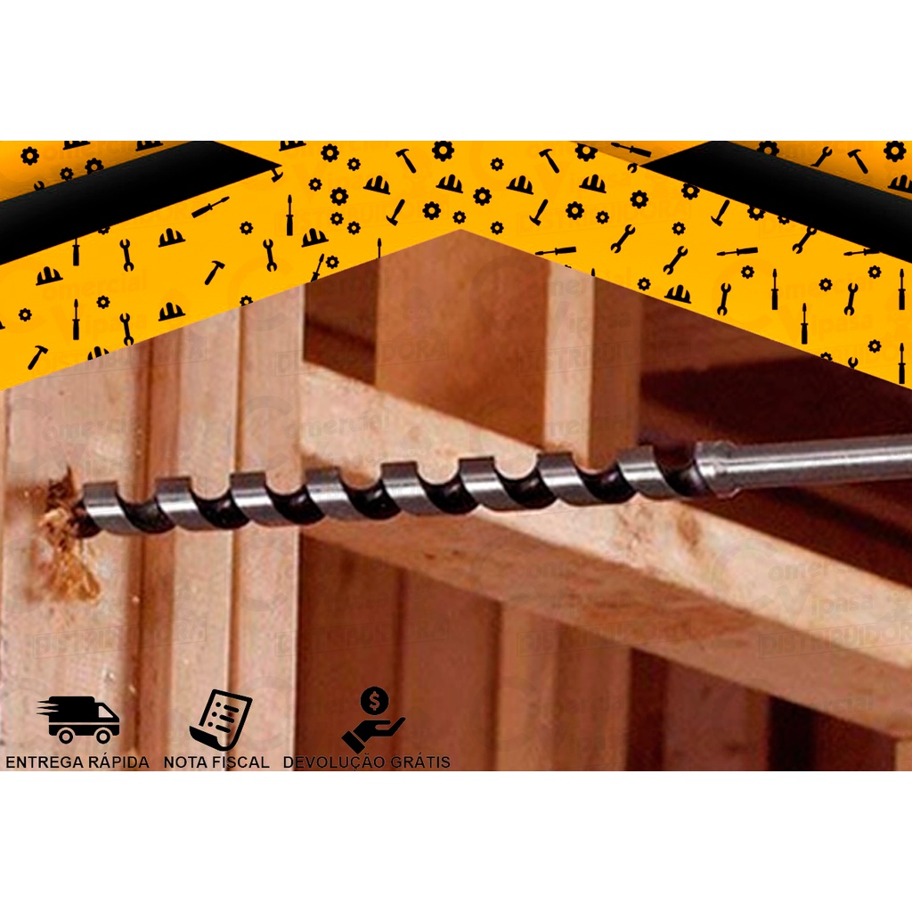 Comercial Vipasa Distribuidora DESCRICAO: BROCA ESPIRAL PARA MADEIRA, 12 X 230 MM HASTE SEXTAVADA MTX Feito de aco carbono com dureza de 40 HRc na parte de corte. A broca tem ponta de centragem com rosca especial que reduz carga axial. Possui ponta afiada que permite com precisao fazer furos nas superficies lisas sem deslocacao da broca e elimina necessidade de perfuracao preliminar. Haste sextavada assegura tomada solida da broca em mandril. Comercial Vipasa Distribuidora
