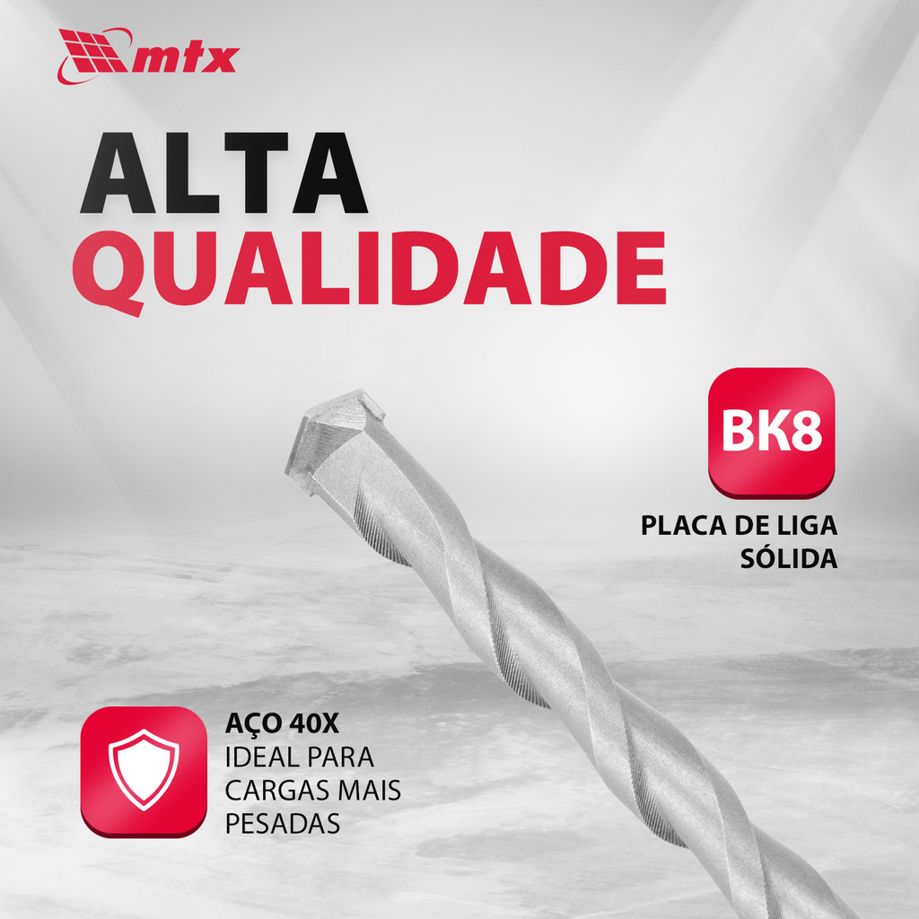 A Broca MTX 708729, com suas dimensões de 12 x 200 mm e haste cilíndrica, é uma ferramenta de alta performance projetada para enfrentar os desafios de perfuração em materiais extremamente duros, como concreto, tijolo e mármore. Esta broca é uma escolha ideal para profissionais e entusiastas do faça-você-mesmo que buscam eficácia e precisão em seus projetos semiprofissionais, bem como em reparos e instalações domésticas. O design inteligente desta broca, incluindo seu perfil alongado, a torna particularmente adequada para realizar perfurações profundas, oferecendo flexibilidade e eficiência em uma ampla gama de aplicações. Explorando as Vantagens: Resistência Superior sob Cargas Pesadas: Fabricada com aço 40X, esta broca é excepcionalmente resistente a cargas pesadas, o que a torna uma ferramenta confiável para uso contínuo em condições desafiadoras. O aço 40X é altamente valorizado por sua durabilidade e capacidade de resistir ao desgaste, garantindo que a broca mantenha sua eficácia ao longo do tempo, mesmo após uso intensivo. Desenhada para Uso Intensivo: A inclusão de uma placa de metal duro VK8 na ponta da broca é um testemunho de sua capacidade para uso intensivo. O VK8, conhecido por sua extrema dureza e resistência ao desgaste, assegura que a broca possa realizar cortes precisos e limpos, mesmo nos materiais mais duros. Esta característica é indispensável para profissionais que necessitam de uma ferramenta que possa enfrentar os trabalhos mais exigentes com confiança. Perfuração Profunda Eficiente: O perfil alongado desta broca não é apenas uma característica de design; ele é fundamental para alcançar perfurações profundas com precisão. Esta capacidade de perfuração profunda é crucial para projetos que exigem furos precisos e profundos, permitindo aos usuários executar suas tarefas com eficiência e exatidão. A Broca MTX 708729 é, portanto, uma solução robusta e confiável para quem precisa de uma ferramenta capaz de perfurar materiais duros com precisão e eficiência. Seu design avançado, juntamente com a escolha de materiais de alta qualidade, faz dela uma opção excelente para uma variedade de projetos, desde aplicações semiprofissionais até reparos e instalações domésticas. Com esta broca, os usuários podem esperar desempenho superior, durabilidade excepcional e resultados precisos, tornando cada projeto mais simples e eficaz.