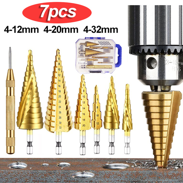 Broca Titânio Escalonada Amarela Aço / Broca Corte Lateral Marcador Punção Com Estojo Organizador P/Metal Aluminio Cobre