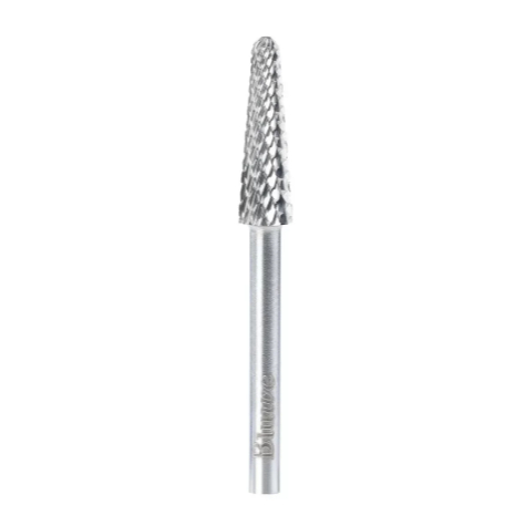 BROCA TUNGSTÊNIO BLUWE Cônica de topo redondo: sua melhor amiga para fazer remoção nas manutenções. Tem o corte bem afiado e remove rapidamente o gel. Por ter o topo arredondado, não corre o risco de machucar a cutícula se encostar nela. Também pode ser usada para acabamento por cima do gel. Cônica de topo reto: temos duas opções que podem ser usadas para emoção da manutenção, acabamento, contorno por baixo da curvatura e deixar o alongamento lisinho por cima. Faixa vermelha - tem corte mais fino, bem afiada e muito rápida. Faixa amarela - extra fina, perfeita para remoção de esmaltação em gel. Cônica de topo redondo médio: um pouco mais estreita do que as de topo redondo, é excelente para fazer o acabamento por baixo da unha, porque encaixa bem nesse espaço. Também pode ser usada para fazer o contorno da unha, remover parte da unha natural ou algum resquício de gel que tenha escorrido durante o alongamento. Para fechar: não entope com facilidade. Agulha de tungstênio: perfeita para usar durante a aplicação da fibra, quando você precisa levar a fibra de um canto para o outro. Outra facilidade é alcançar cantinhos que a lixa não consegue, por exemplo quando a cliente tem as laterais do dedo mais altas e a lixa não encaixa, essa agulha resolve. Ela é uma broca suave, não precisa ter medo de passar perto da cutícula.