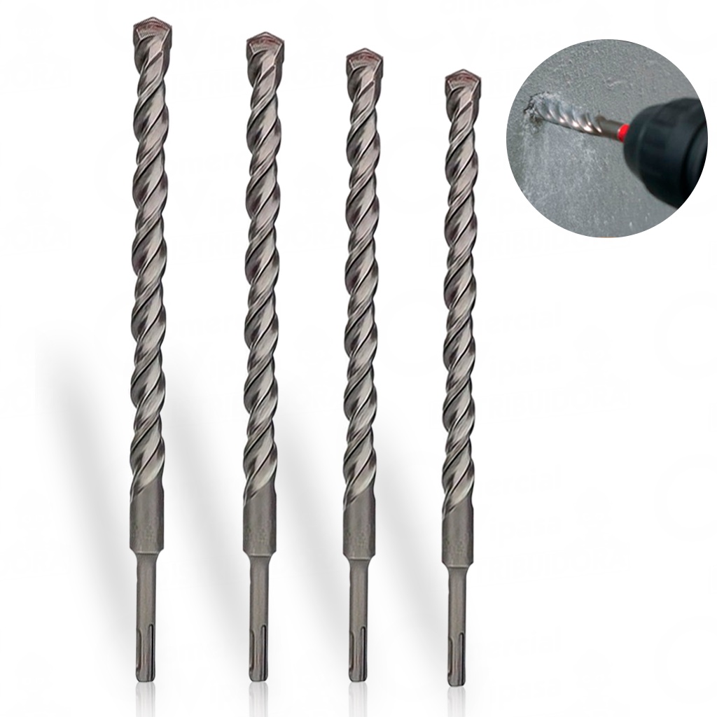 Broca Videa Grande Para Martelete SDS Plus 10X300mm - 16X600mm Aço Cromo Profissional Concreto Viga