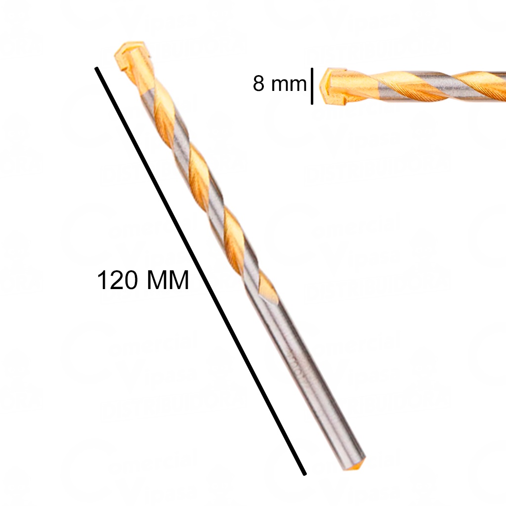 COMERCIAL VIPASA DISTRIBUIDORA. Broca Videa Para Concreto Golden Line Aço 06 A 10 mm x 100 mm A 120 mm Mtx Profissional Broca Para Concreto Golden Line 06 A 10 mm x 100 mm A 120 mm Broca para concreto haste cilíndrica golden line Melhora na remoção de poeira Revestimento anti atrito de sulco, facilita a remoção de pó de concreto e resíduos que reduz o atrito e o aquecimento na perfuração. Lâmina afiada de metal duro, é resistente a perfuração de impacto - Adequadas para furadeiras de impacto. Tamanhos: - 06 X 100 MM - 08 X 120 MM - 10 X 120 MM Marca: Mtx Composição: Aço, Nitreto COMERCIAL VIPASA DISTRIBUIDORA.