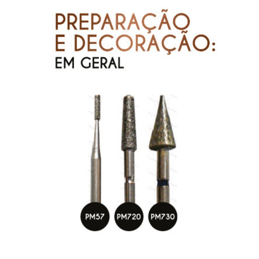 Brocas Diamantadas diversos formatos para unhas artificiais em todas as técnicas.Usadas no desbaste e lixamento de unhas artificiais como Unhas de Fibra, Unhas de Gel, Unhas de Porcelana, Acrigel, entre outras. As brocas possuem as pontas diamantadas que oferecem mais resistência e durabilidade da broca e não se desgastam com facilidade. Compatível com motores:Beltec LB50 e LB100, Nail Spa, Piubella, entre outros que encaixam brocas de 2,35mm