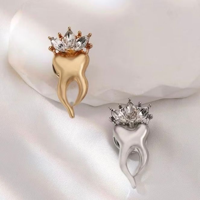 Broche Dentinho Dourado – 2 Modelos Disponíveis 🦷 Broche em formato de dentinho, perfeito para dentistas que desejam adicionar um toque elegante ao jaleco ou uniforme. ✨ Modelos disponíveis: 1. Dourado. Acabamento liso e brilhante. 2. Dourado ou Prata Diamante, com aplicação de strass, trazendo um charme extra ao visual. 🔒 Fechamento: Alfinete com fecho de segurança. 📏 Tamanho: Aproximadamente 3 cm de altura x 1,8 cm de largura. 🎨 Cor: Dourada. 💎 Material: Metal com acabamento premium. 💰 Valor referente à unidade. Ideal para destacar sua paixão pela odontologia com estilo no dia a dia clínico!