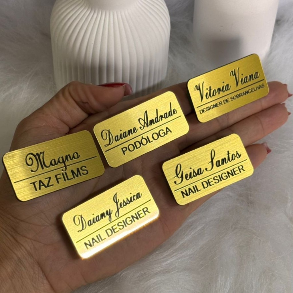 Broche Crachá Personalizado Magnético Nome E Profissão Dourado Escovado Para Empresa, Clinica ou Formatura