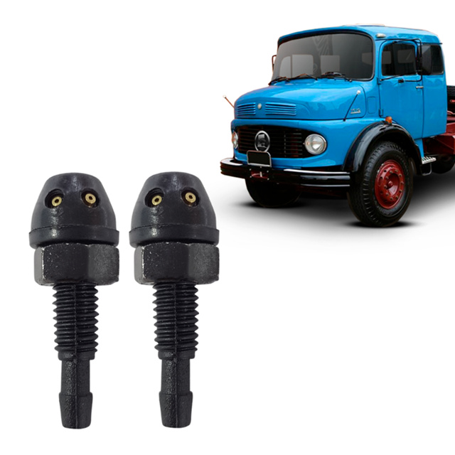 Brucutu Bico Esguicho Ejetor de Água Limpador do Para-brisa com 2 Saídas Compatível com os Caminhões Mercedes-Benz Modelos de Aplicação: - 1113 - 1114 - 1313 - 1316 - 1513 - 1518 - 1519 - 2013 - 2213 - Medidas Aproximadas: 4cm x 1,5cm - Peça fabricada em Plástico e Metal