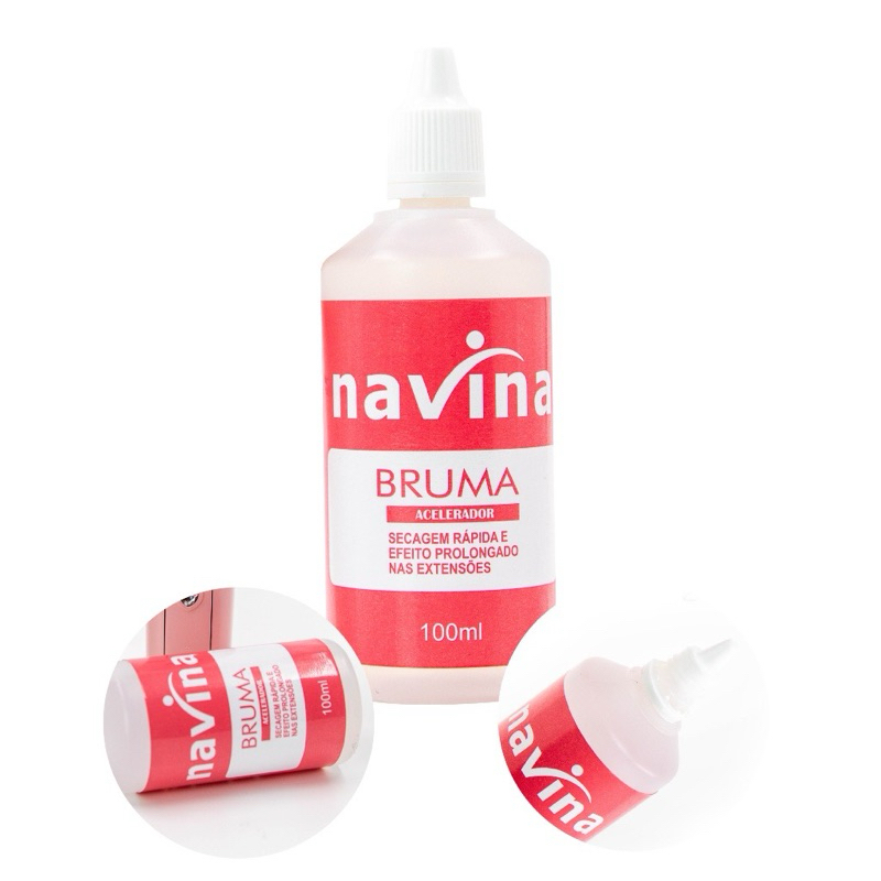 Bruma Aceleradora De Cola para Extensão de Cílios Navina 100ml Modo de Utilizar: Execute normalmente o procedimento de extensão de cílios e finalize com a Bruma Aceleradora Navina direcionando o produto em nano partículas de umidade, projetadas pelo nanomister, a uma distância aproximada de 20cm sobre os olhos ainda fechados. Produto pronto para ser utilizado. Precauções: Não ingerir. Mantenha a embalagem bem fechada, em local seco e fresco, ao abrigo de luz solar direta e fora do alcance de crianças. Em caso de sensibilidade e/ou irritação, suspenda a utilização imediatamente e procure orientação médica. Utilização Externa. embalagem novo