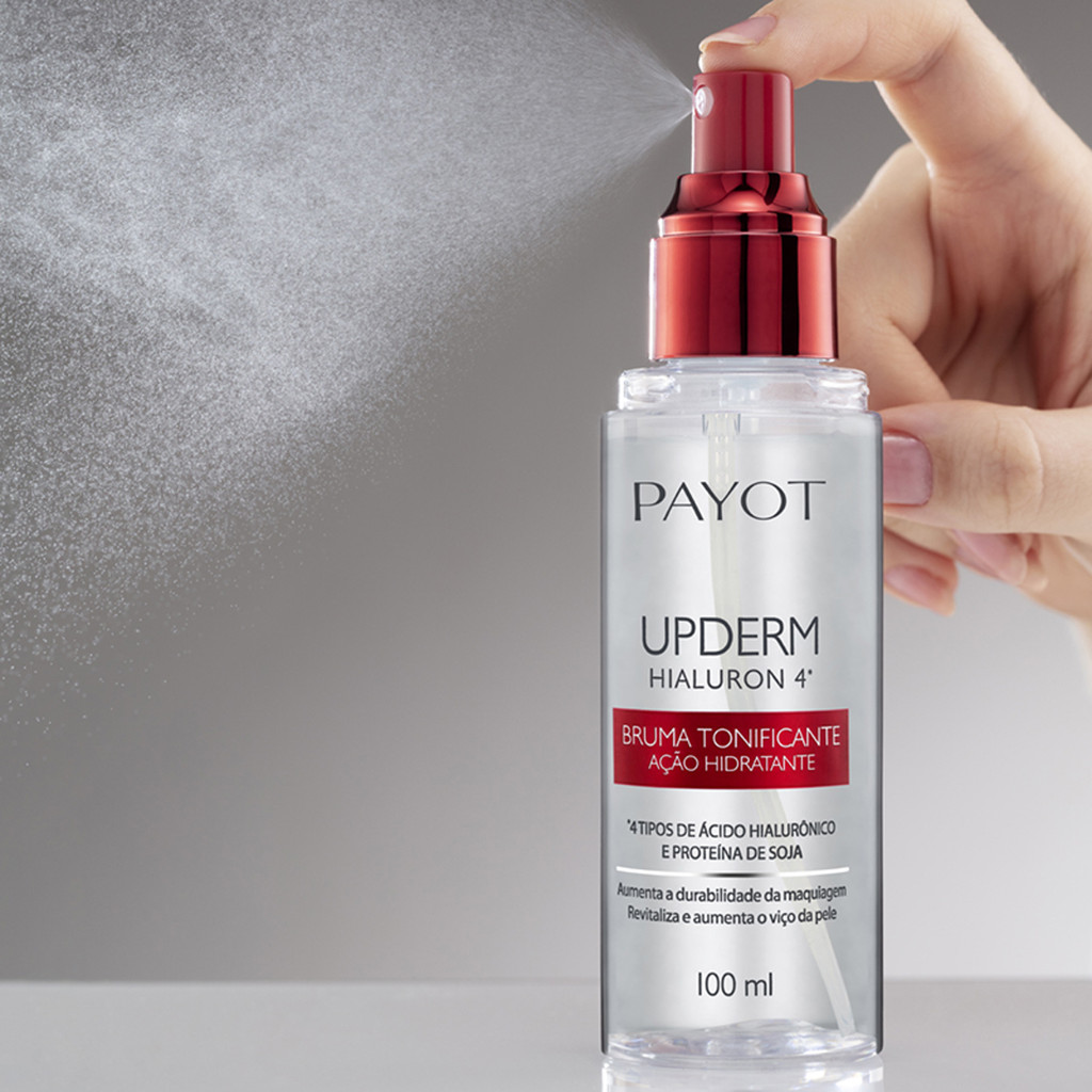 Descrição: A Bruma Tonificante Payot Upderm 100ml aumenta a durabilidade da maquiagem enquanto cuida da sua pele. Sua fórmula com Proteína de Soja e uma combinação de 4 tipos de Ácido Hialurônico hidrata e melhora a elasticidade da pele. É absorvida rapidamente e não deixa aspecto oleoso. Para todos os tipos de pele. Produto livre de álcool, parabenos e corantes. Sem ingredientes de origem animal. Dermatologicamente Testado e Hipoalergênico MODO DE USAR: Segure o frasco a 20 cm do rosto e com os olhos fechados borrife na pele seca. Espere o produto ser absorvido. Pode ser usado após a etapa da limpeza para tonificar e tratar a pele ou após maquiagem para fixar e dar acabamento. Uso externo. USO EXTERNO. Manter o produto bem fechado, em lugar seco, ao abrigo da luz direta e longe do calor excessivo. Este produto foi formulado de maneira a minimizar possível surgimento de alergia. Descontinuar o uso em caso de sensibilização. MANTER FORA DO ALCANCE DE CRIANÇAS. Conteúdo da embalagem: 100ml. Composição: Ingredientes (Português): Água, Propanodiol, Goma Biossacarídica-1, Polissorbato 20, Fenoxietanol, Crospolímero De Hialuronato Sódico, Hialuronato De Sódio, Caprililglicol, Hialuronato De Sódio Acetilado, Hialuronato De Sódio Hidrolisado, Extrato Do Tubérculo De Mandioca, Farinha De Soja Hidrolisada, Pentileno Glicol, Imidazolidinilureia, Edetato Dissódico, Perfume, Etilhexilglicerina, Trietanolamina #Imagem ilustrativa. Cor do produto poderá variar dependendo da configuração do monitor ou celular.