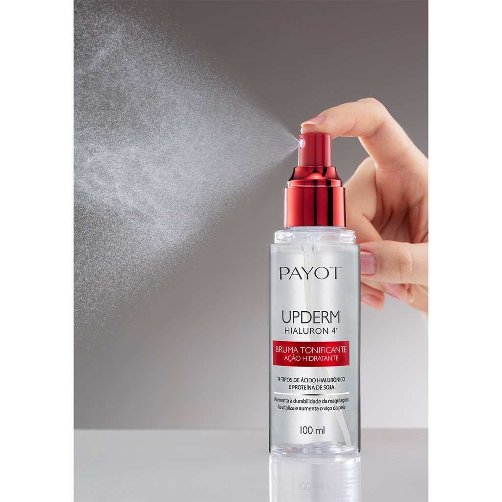 A Bruma Tonificante UPDerm Payot aumenta a durabilidade da maquiagem enquanto cuida da sua pele. Sua fórmula com Proteína de Soja e uma combinação de 4 tipos de Ácido Hialurônico hidrata e melhora a elasticidade da pele. É absorvida rapidamente e não deixa aspecto oleoso. Para todos os tipos de pele. Produto livre de álcool, parabenos e corantes. Sem ingredientes de origem animal. Dermatologicamente Testado e Hipoalergênico Modo de uso: Segure o frasco a 20 cm do rosto e com os olhos fechados borrife na pele seca. Espere o produto ser absorvido. Pode ser usado após a etapa da limpeza para tonificar e tratar a pele ou após maquiagem para fixar e dar acabamento. Uso externo. Precauções: Manter o produto bem fechado, em lugar seco, ao abrigo da luz direta e longe do calor excessivo. Este produto foi formulado de maneira a minimizar possível surgimento de alergia. Descontinuar o uso em caso de sensibilização. Manter fora do alcance de crianças. Uso externo. Ingredientes: Ingredientes (Português): Água, Propanodiol, Goma Biossacarídica-1, Polissorbato 20, Fenoxietanol, Crospolímero De Hialuronato Sódico, Hialuronato De Sódio, Caprililglicol, Hialuronato De Sódio Acetilado, Hialuronato De Sódio Hidrolisado, Extrato Do Tubérculo De Mandioca, Farinha De Soja Hidrolisada, Pentileno Glicol, Imidazolidinilureia, Edetato Dissódico, Perfume, Etilhexilglicerina, Trietanolamina