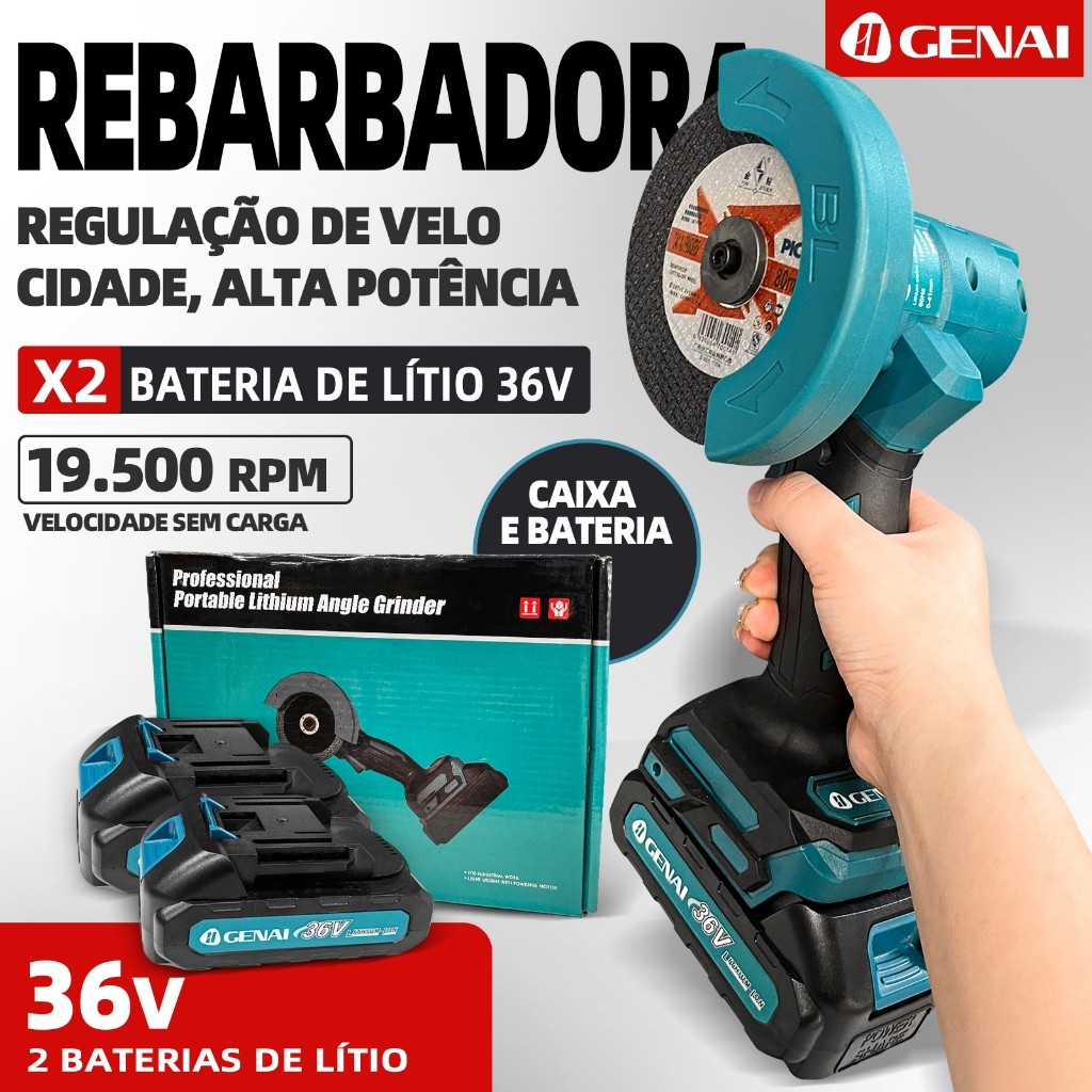 Brushless Esmerilhadeira Lixadeira Angular 105/106mm Com 2 Baterias 36V