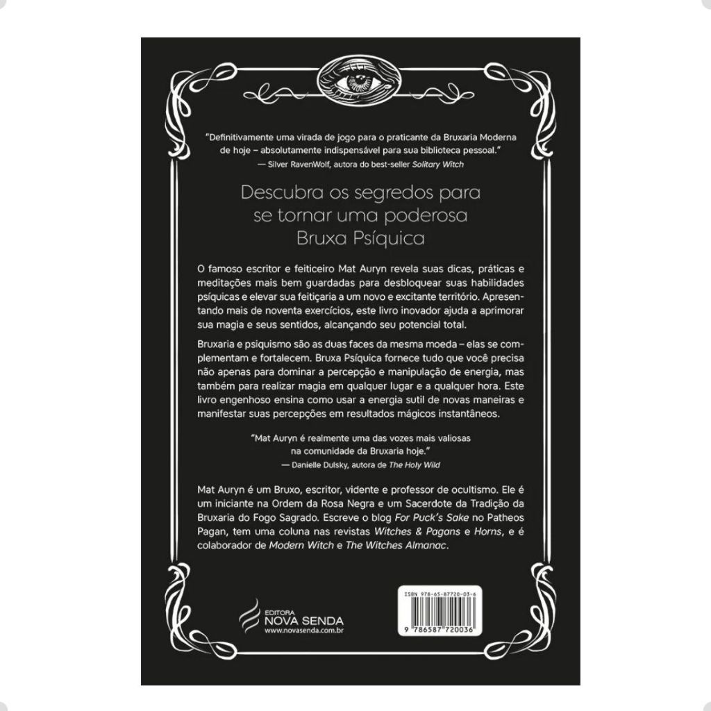 Neste Kit você leva 2 grandes livros sobre bruxaria,wicca do famoso escritor e feiticeiro Mat Auryn a um preço que é fantástico. Bruxa Psíquica: um guia metafísico para meditação, magia e manifestação - Mat Auryn O famoso escritor e feiticeiro Mat Auryn revela suas dicas, práticas e meditações mais bem guardadas para desbloquear suas habilidades psíquicas e elevar sua feitiçaria a um novo e excitante território. Apresentando mais de noventa exercícios, este livro inovador ajuda a aprimorar sua magia e seus sentidos, alcançando seu potencial total. Bruxaria e psiquismo são as duas faces da mesma moeda – elas se complementam e fortalecem. Bruxa Psíquica fornece tudo que você precisa não apenas para dominar a percepção e manipulação de energia, mas também para realizar magia em qualquer lugar e a qualquer hora. Este livro engenhoso ensina como usar a energia sutil de novas maneiras e manifestar suas percepções em resultados mágicos instantâneos. Dominando a Magia: Um Curso de Feitiço para a Bruxa Psíquica - Mat Auryn Aumente sua habilidade psíquica e incorpore os maiores mistérios da magia em sua prática. Companheiro do bestseller internacional Bruxa Psíquica, este livro inovador apresenta mais de sessenta feitiços e é o primeiro de seu tipo a se concentrar em lançar magia para preencher a lacuna entre os mundos visíveis e invisíveis. Mat ensina como se tornar uma poderosa bruxa psíquica, conectando-se com as ferramentas da Bruxaria, com os cinco elementos, com a lua, as estações e os planetas. Você aprenderá a mecânica do feitiço e como tornar sua magia o mais eficaz possível. Além dos feitiços testados e comprovados de Mat, Dominando a Magia apresenta mais de uma dúzia de feitiços de praticantes conhecidos, incluindo Christopher Penczak, Judika Illes, Juliet Diaz, Storm Faerywolf, Laura Tempest Zakroff, Devin Hunter, Madame Pamita, entre outros.