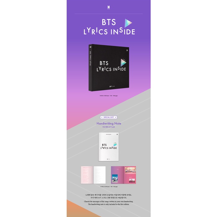 Uploaded : 22/06/29 RELEASED DATE Aug. 20, 2022 COMPONENTS ┗ 📘 BTS - LYRICS INSIDE 📖 BOOK: 240*250mm | 180p 📖 HANDWRITING NOTE: 148*210mm | 80p 📖 10 SONGS 📖 SING ALONG AS YOU FAN-CHANT 📖 AT THE CONCERT & SULTURE IN BTS SONGS #BTS #JIN #SUGA #J-HOPE #RM #JIMIN #V #JUNGKOOK