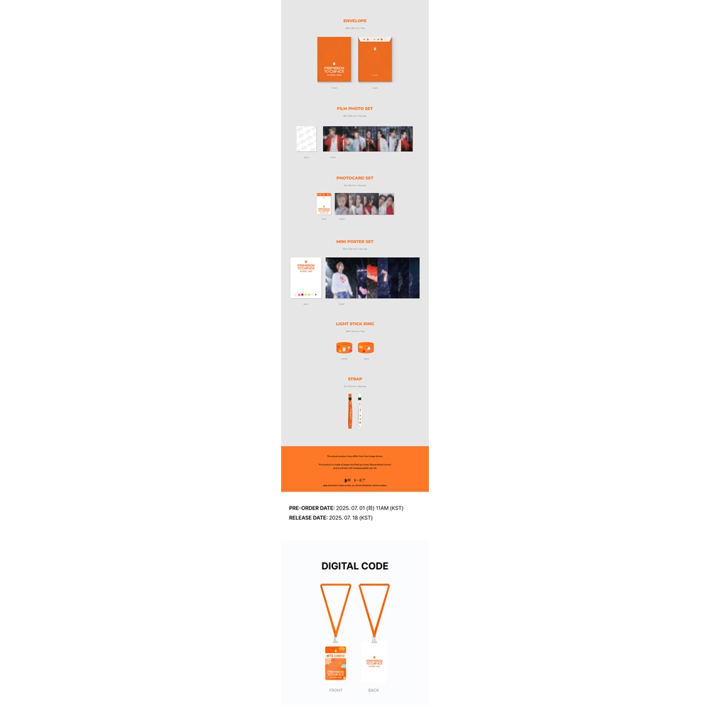 ◈BTS Permission to Dance on Stage - SEOUL◈ 💿BTS Permission to Dance on Stage - SEOUL_Digital code 🎵 Contents - Out cover - Interviiew photobook - Crew note - Digital code - Envelope - Film photo set - Photocard set - Mini poster set - Light stick ring - Strap 📅 Released on July 18, 2025 #bts