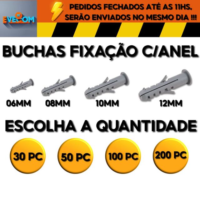 | Bucha Plástica Fixação Com Anel Parede Concreto Alvenaria Tijolos 0... este produto | R$ 7,49 | 36% | 5.0/5 | 14 |