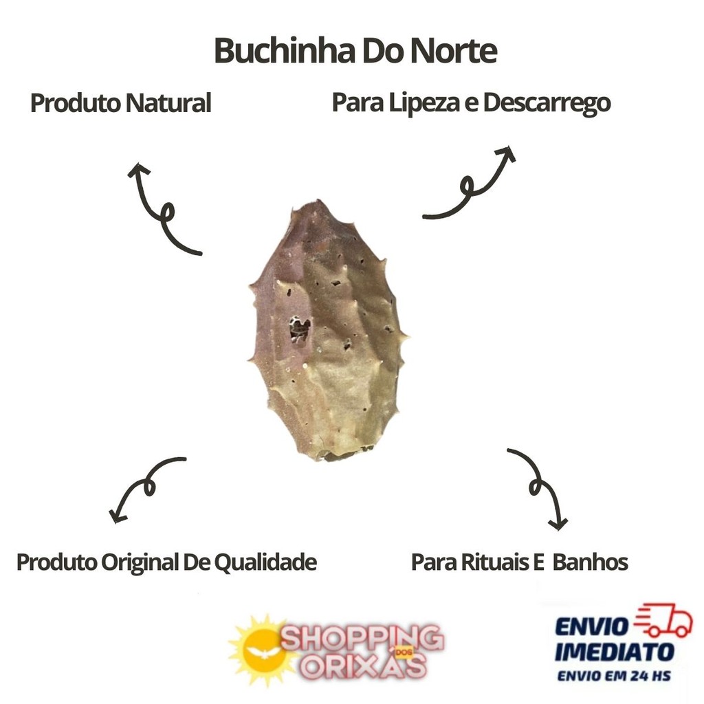 Buchinha Do Norte Para Chá Limpeza E Descarrego Unidade A buchinha-do-norte é usada na Umbanda e no Candomblé para limpeza espiritual profunda, descarrego e desobsessão.É aplicada em banhos e defumações para remover energias negativas e demandas espirituais, É uma erva de grande poder, usada com responsabilidade em rituais que exigem força espiritual para limpeza e corte de demandas pesadas. --- Ficha Técnica - Produto Novo. - Produto de Qualidade e Procedência. - Produto Natural. --- Medidas - Altura: De 6cm a 8cm - Largura: De 3cm a 5cm (OBS: Como se trata de um produto natural pode estar havendo variações de cores e tamanhos)