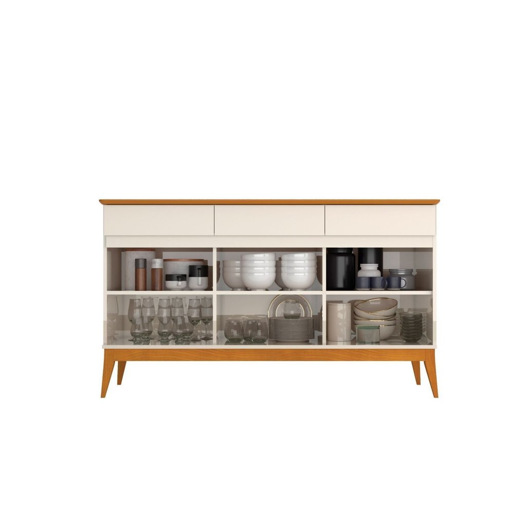 Buffet Aparador 3 Portas 3 Gavetas com Pés em Madeira Maciça Magnum Off White/Cedro