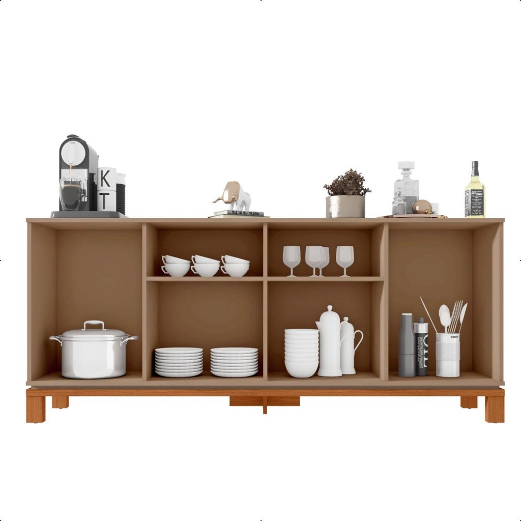 O sofisticado Buffet Jace da Caemmun, é um móvel que une design moderno e funcionalidade. Com portas de giro, laterais com textura microrripada e fecho toque, oferece requinte e praticidade ao seu ambiente. O detalhe do canal e o puxador ponto nas portas centrais completam o design minimalista e elegante. Possui pés cavalete com base elevada, proporcionando um visual leve e moderno. Dimensões do Produto: - Peso: 45,8 kg; - Altura: 77 cm; - Largura: 179,4 cm; - Profundidade: 37,9 cm. Características Técnicas: - Possui 4 Portas; - Possui 6 Nichos; - Possui 2 Prateleiras; - Tonalidade do Produto: Freijó/Sued; - Estrutura em MDF de 15mm, MDP 15mm, 25mm de espessura. HDF de 2,5mm de espessura. Peso Suportado: - Parte Superior: 30 kg; - Prateleiras: 1,5 kg cada; - Repartições inferior: 3-1,5 kg. - Acompanha manual de montagem; - Garantia de 90 dias contra defeito de fabricação; - Este móvel chegará em sua casa separado em 1 volume. Dimensões do Volume: - Altura: 10 cm; - Largura: 185,2 cm; - Comprimento: 46,7 cm. - Recomendações de limpeza: Limpar com pano macio, seco ou úmido, sem uso de produtos abrasivos, pois podem trazer danos ao produto. - Sobre a entrega: As transportadoras contratadas, não realizam entregas em apartamentos, realizando assim a entrega na portaria do prédio. *Produto segue desmontado, montagem por conta do comprador; *Imagens do produto são meramente ilustrativas.