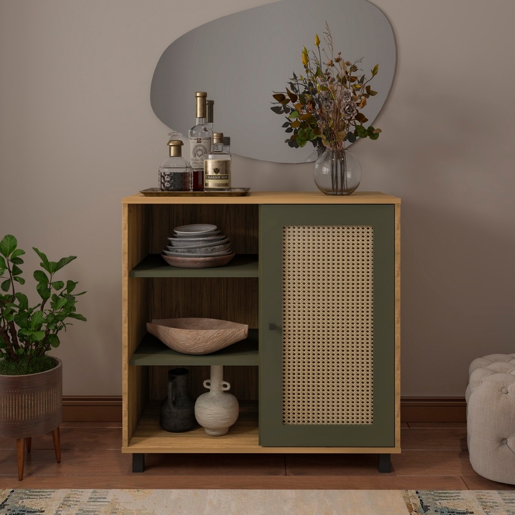 O Buffet Charlotte é a escolha perfeita para quem busca um móvel versátil, elegante e que torne o ambiente aconchegante! A palhinha presente na porta, combinada com as cores encantadoras, irá remeter ao seu ambiente a sensação de conforto e afetividade. Com espaço suficiente para guardar tudo que você precisa, desde louças e talheres até objetos de decoração, ele é perfeito para qualquer cômodo da sua casa, funcionando como um buffet, bar, cantinho do café, ou decorando o hall de entrada. Com design elegante e leve, ele transformará a aparência da sua casa. Não perca mais tempo e adicione essa peça incrível à sua decoração agora! Diferenciais – Pintura 3D no acabamento Palha; – Porta com dobradiças metálicas; – Três amplos nichos; – Acabamento madeirado em pintura UV texturizada, e Off White em pintura UV alto brilho, ambos de longa duração e fácil limpeza. Dimensões do produto montado: - Largura: 80 cm - Profundidade: 40 cm - Altura: 80 cm - Peso: 21,3