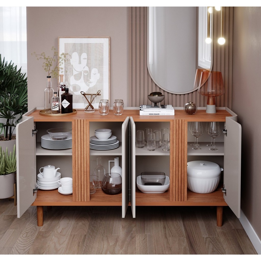 Buffet Aparador de Sala de Jantar 4 portas com pés de madeira maciça Eva Off White/Cinamomo