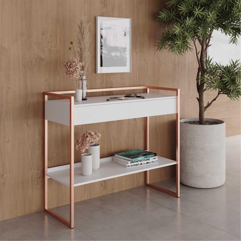 O Aparadorveio para compor sua sala ou cozinha com seu charme industrial para a renovação do seu ambiente bonito e moderno. APARADOR em MDP PERFEX 15mm com Tampo Superior, Gavetas com Corrediças Telescópicas, abaixo Prateleira Estrutura em Aço 20x20 com Pintura EPOXI nas Cores Preto e Cobre. Dimensões do produto: Altura: 87 cm Largura: 100,9 cm Profundidade: 41 cm Informações complementares: Material Predominante:MDP PERFEX 15 mm Pés: Sim, industriais. Adega: Não Prateleiras: Sim (2) Cores Disponíves: Branco Cobre, Preto Cobre, Preto, Branco, Affara, Montana Gavetas: Sim (1) Portas: Não. Nichos: Não Porta objetos: SIm Itens Inclusos: 01 Aparador Kit completo para montagem, manual de instruções para montagem. Garantia: 3 meses contra defeito de fabricação Informações complementares: - Fotos meramente ilustrativas do produto no ambiente. - Os objetos que ambientam as fotos não acompanham o produto; - Verificar descrição e tamanho do produto antes da compra. - Avaliar a mercadoria no ato do recebimento e recusar em caso de divergência ou avarias. - Mantenha as informações de contato e endereço de entrega atualizados para entrarmos em contato caso necessário. - Limpar com flanela ou pano macio seco, não utilizar produtos abrasivos, desengordurantes, álcool ou solvente. Não expor o produto diretamente à luz solar e à umidade. * Sugerimos a contratação de um montador profissional para a montagem do produto. Não nos responsabilizamos por avarias causadas no ato da montagem. * Não nos responsabilizamos pela montagem e desmontagem do produto no ato da entrega e devolução, assim como os custos gerados nestas situações. * A transportadora entregará o produto no andar térreo do endereço de entrega. * Não nos responsabilizamos por subir escadas, corredores e elevadores ou transporte por guincho em apartamentos.