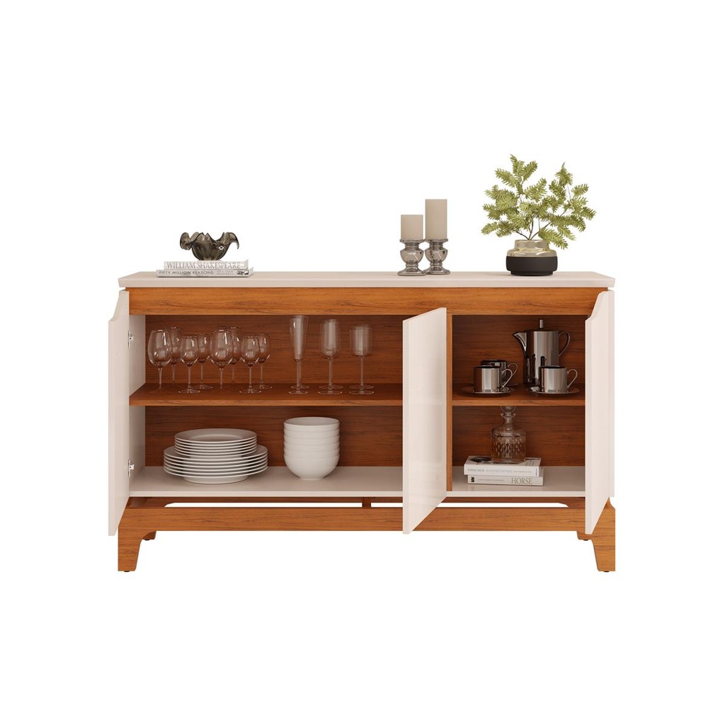 Buffet com 3 Portas em MDF e 2 Prateleiras DJ Móveis Joile Freijó Off White