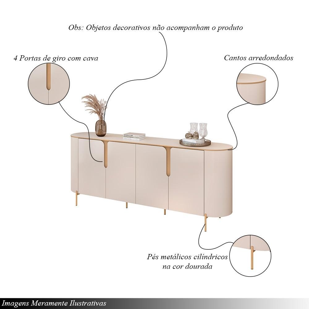 Buffet Decorativo América 4 Portas Pés Metálicos Dourados Off White G18 - Gran Belo