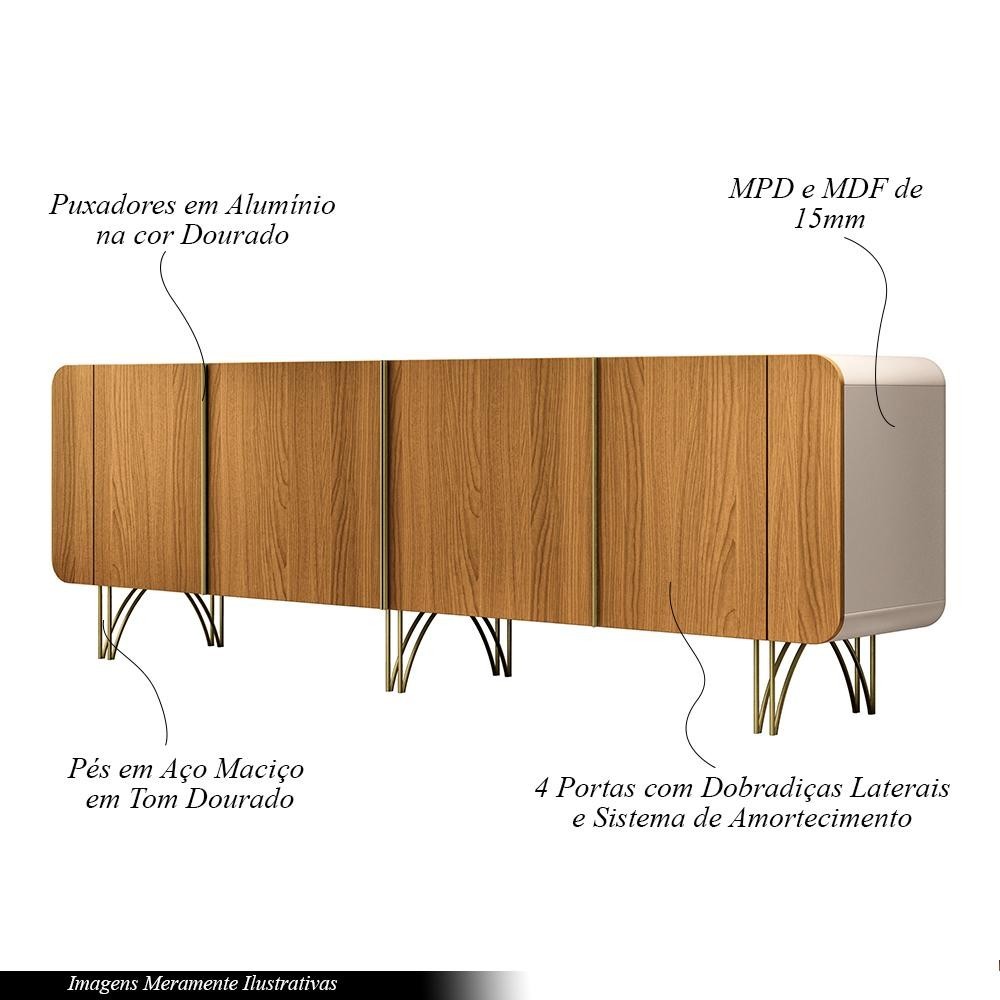 Buffet Decorativo com Puxadores em Alumínio Pés Aço Maciço Virginia Off White/Cinamomo G26 - Gran belo
