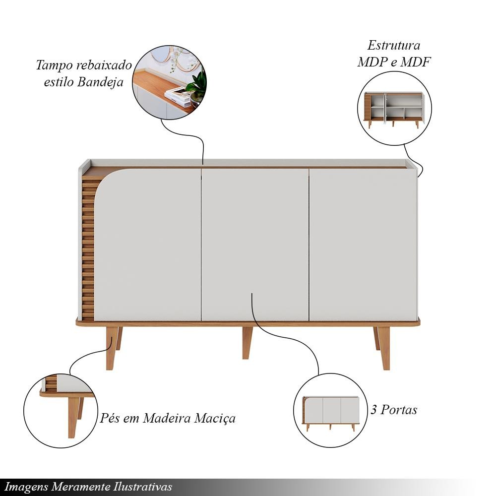 Buffet Decorativo Sala de Jantar Versátil Village 1,36cm Pés de Madeira Off-White/ Freijó G73 - Gran Belo