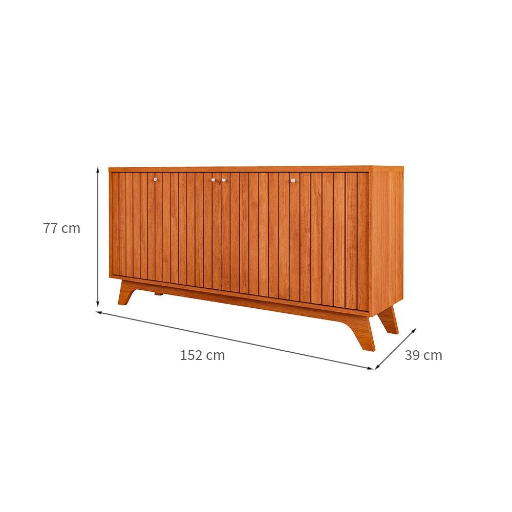 Que tal o Buffet Isa?Buscando por uma maneira elegante de organizar sua sala de jantar ou estar? O Buffet Isa é a resposta. Enquanto as divisões internas oferecem espaço generoso para guardar louças, taças e outros utensílios essenciais para momentos de confraternização, o tampo espaçoso é perfeito para exibir suas melhores receitas em bandejas durante refeições em família, ou para destacar itens decorativos no dia a dia. Já o design moderno com uma combinação de acabamento madeirado e detalhe ripado adiciona um toque de elegância e sofisticação ao ambiente. Agora, seu lar-style ficará completo de verdade. Cor: Marrom Garantia em Meses: 3 Cores do Produto: Marrom Instruções/Cuidados: Para manter seu móvel novo por muito mais tempo, evite locais úmidos, mantenha-o distante de líquidos. Para limpá-lo com segurança utilize uma flanela seca sem produtos abrasivos Conteúdo da Embalagem: 1 Buffet - Entregue em: 2 Volumes Modelo: Isa Número de Volumes: 2 Material: O Buffet Isa possui estrutura em MDF 15 mm e 25 mm, dobradiças metálicas, puxadores em ABS, pés em MDF e acabamento em pintura UV Material para Filtro: MDF Descrição do Tamanho: Altura: 77 cm | Largura: 152 cm | Profundidade: 39 cm Altura do Produto (cm): 77 Largura do Produto (cm): 152 Comprimento do Produto (cm): 39 Peso do Produto (Kg): 46 Produto precisa de Montagem?: Sim, sugerimos a contratação do nosso serviço de montagem (para os CEPs em que o serviço está disponível) ou de algum profissional experiente de sua preferência Número de portas: 4 Número de gavetas: Sem gavetas Tipo de pé: Fixo Material da dobradiça/trilho da porta: Metal Material da estrutura: MDF Material do puxador: ABS Necessita fixação na parede: Não Possui adega: Não Tipo de Porta: Articulada Material dos pés: MDF PROFUNDIDADE x LARGURA x ALTURA: 39 x 152 x 77 Fornecedor: Cimol - Comércio Indústria de Móveis Ltda Baterias são necessárias?: Não Certificação de teste externa: Não Componentes incluídos: Não Is Fragile: Não Número da peça: Não Produto: Buffet Inclui manual de montagem: Sim